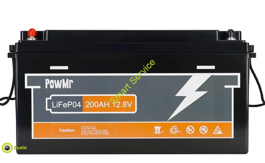 Акумулятор PowMr 12V 200Ah 2560W*h LiFePO4 не потребує обслуговування, має довготривалий термін служби (6000 циклів), має вбудовану плату BMS для захисту від надмірного заряду та розряду акумулятора, надійно працюють в послідовному та паралельному з’єднанні (виробником рекомендовано до 4 штук).